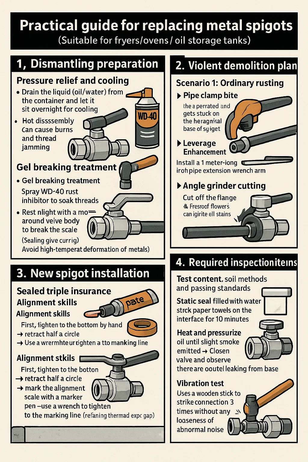 | Hottrykstest | Varmolie, indtil det er viskende røg → Luk ventilen | Pass : Ingen olie dråber ved basen |