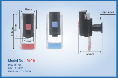 Vi er velkendte Vanddispenser varmt koldt vand hane-m16 suppliers. Virksomheden har i mange år fokuseret på udvikling og produktion af tilbehør til drikkevandsudstyr og plastprodukter. De vigtigste produkter tegner sig for mere end 60% af den indenlandske markedsandel og samarbejder med mange producenter og eksporteres til Indien, Tyrkiet, De Forenede Arabiske Emirater, Tyskland, Italien, Sverige, Australien, Argentina, Rusland og andre asiatiske, europæiske, amerikanske , mellemøstlige lande. Det leverer udstyr og teknisk support til mere end 1.000 velkendte produktionsvirksomheder (drikkevandsudstyr) i ind- og udland og opretholder et langsigtet partnerskab. Vi laver også engros custom Vanddispenser varmt koldt vand hane-m16.